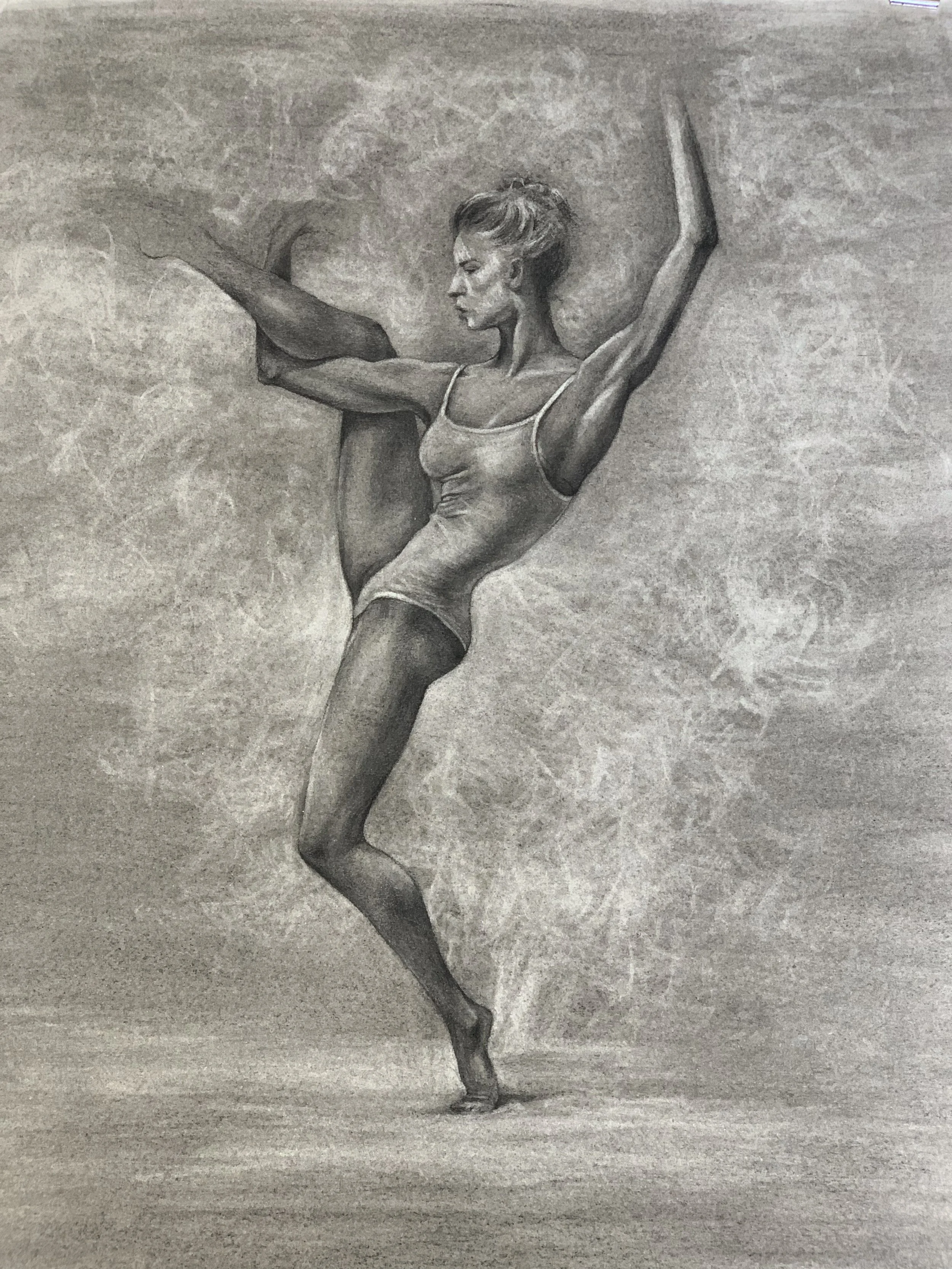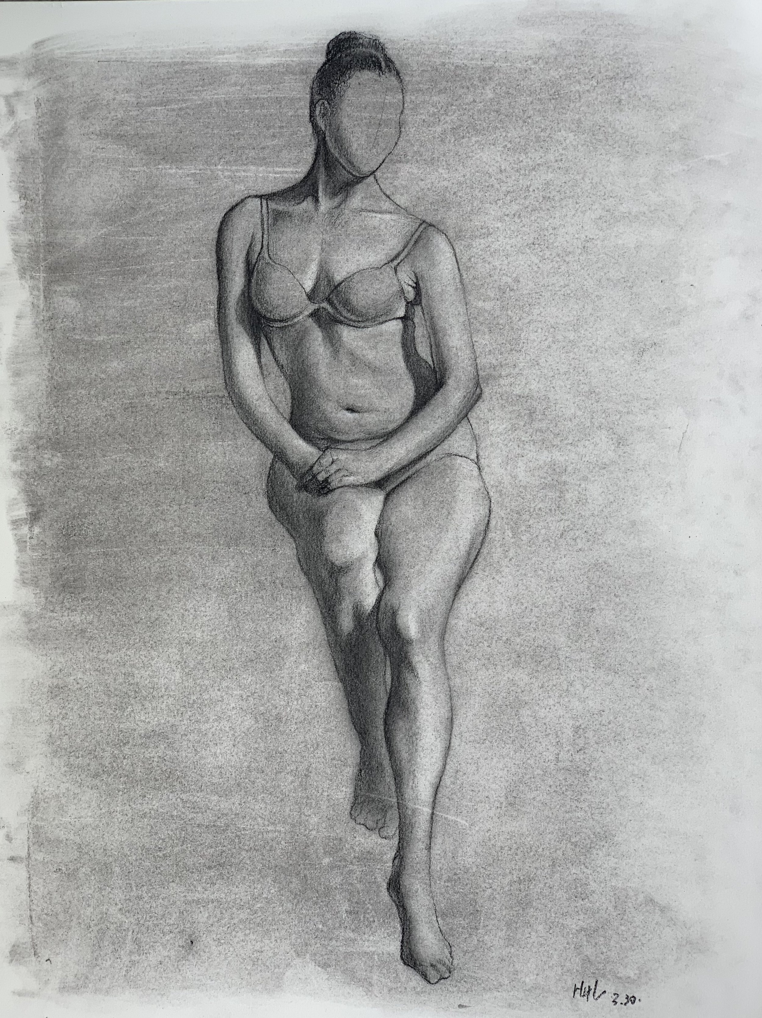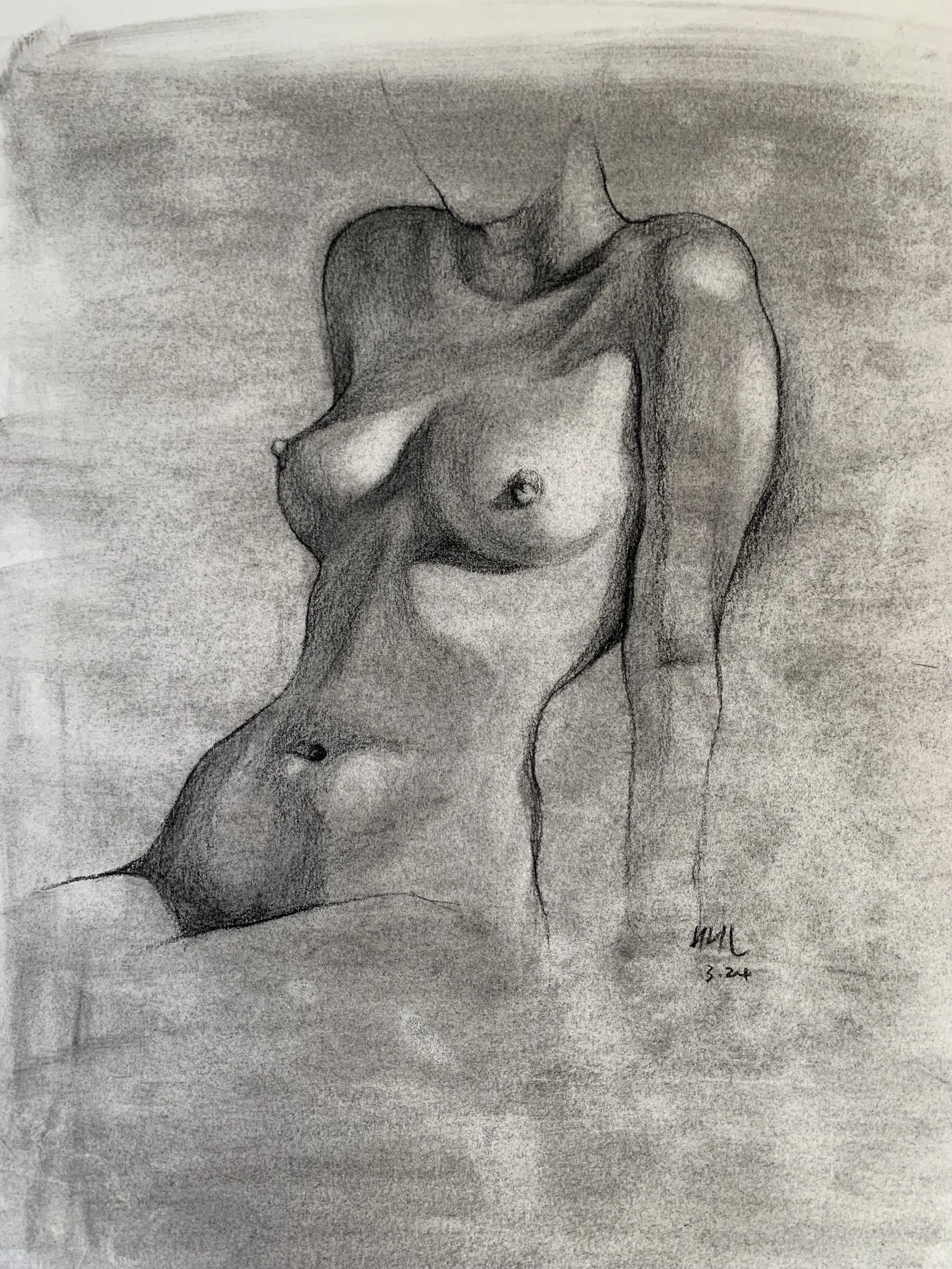 Figure Drawing, Charcoal on paper, 18” x 24”
