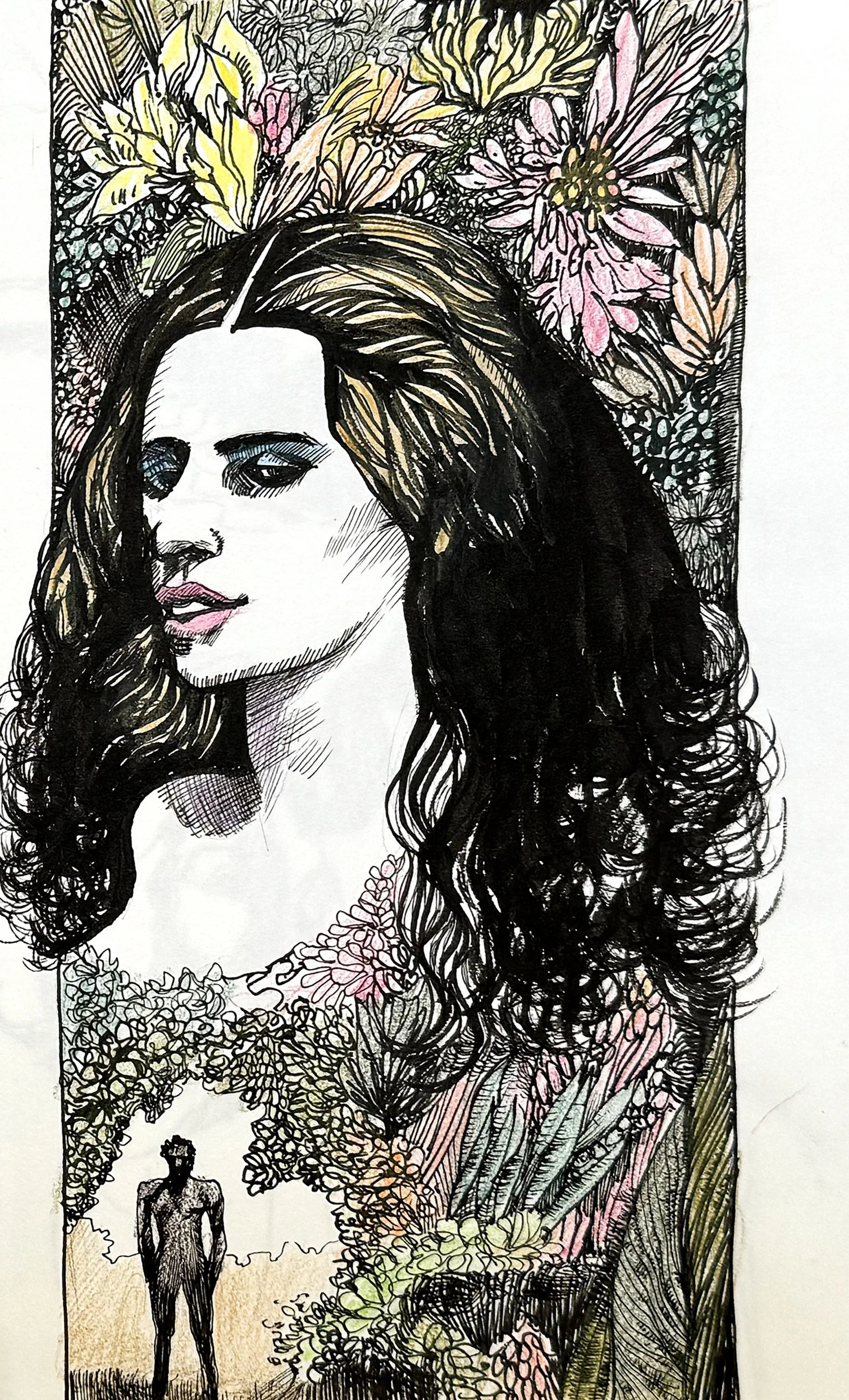 Sketch, Black Ink on paper, 5.5” x 8.5”